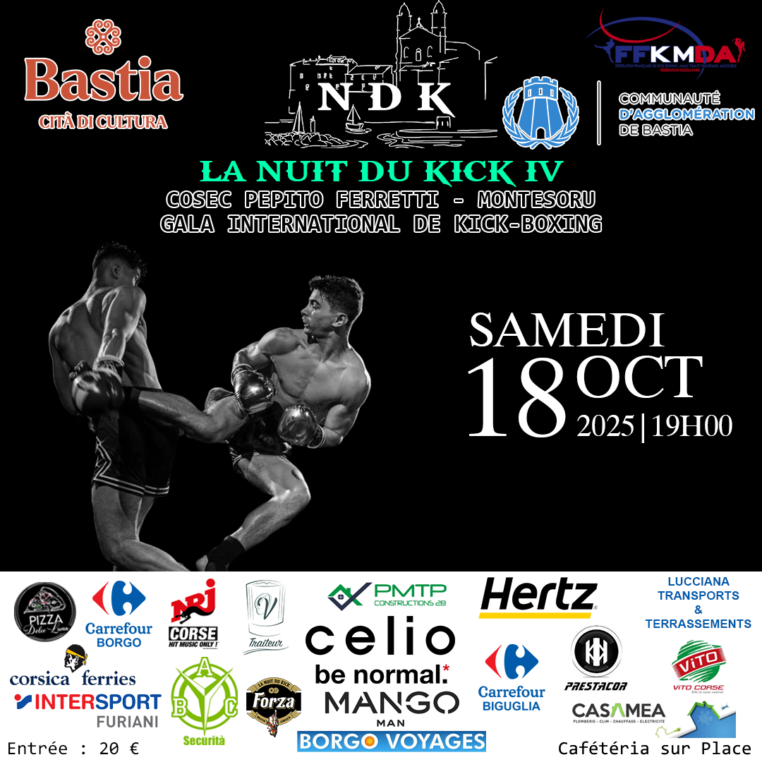 Début : 18/10/2025 19:00 Fin : 18/10/2025 23:30 Arbre des combats Adresse : Cosec Pepito Ferretti - Montesoru Bastia Partager sur