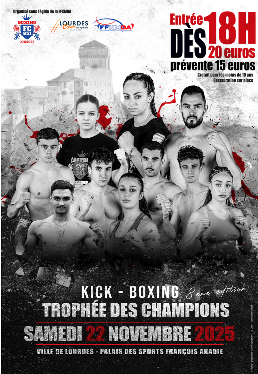 Début : 22/11/2025 00:00 Fin : 22/11/2025 00:00 à partir de 18h Arbre des combats Adresse : Palais des sports François Abadie - Lourdes Partager sur